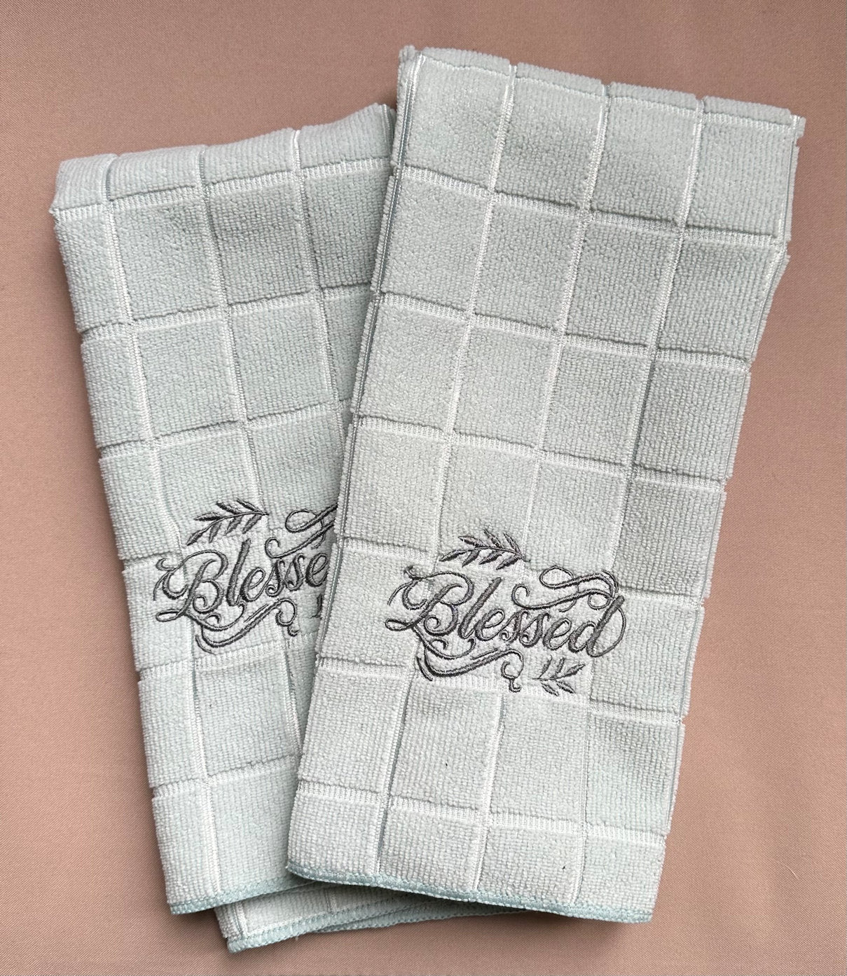 Stay blessed in your kitchen with this charming towel set! Featuring two towels, this set has you covered for all your cooking and baking needs. Rejoice in the ultimate kitchen accessory - sweetly blessed but with a good sense of humor.