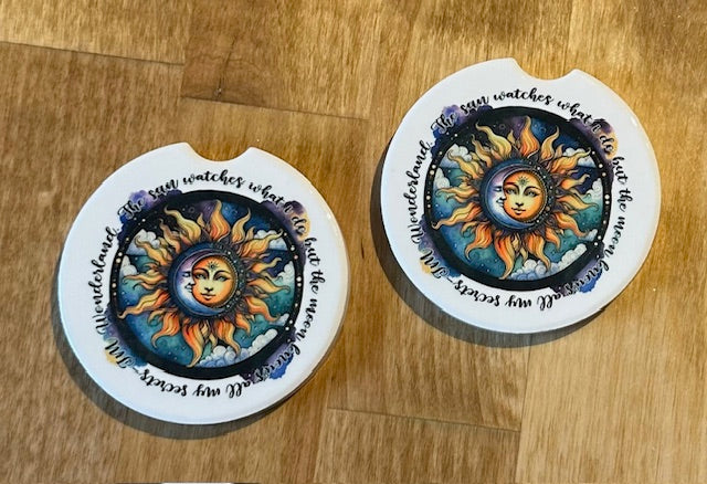 Set of two, each coaster measure about 2.64".