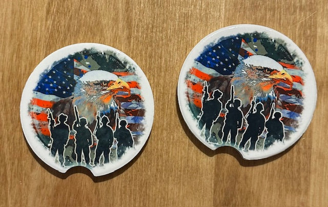 Spice up your ride with our car coasters! This ceramic coaster fits most standard vehicles and has a convenient notch for easy removal and cleaning. Keep your cup holders clean and your drinks from spilling while adding a touch of personality to your car. (Not compatible with flying cars).