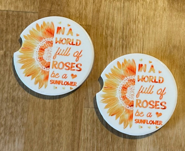 Spice up your ride with our car coasters! This ceramic coaster fits most standard vehicles and has a convenient notch for easy removal and cleaning. Keep your cup holders clean and your drinks from spilling while adding a touch of personality to your car. (Not compatible with flying cars).